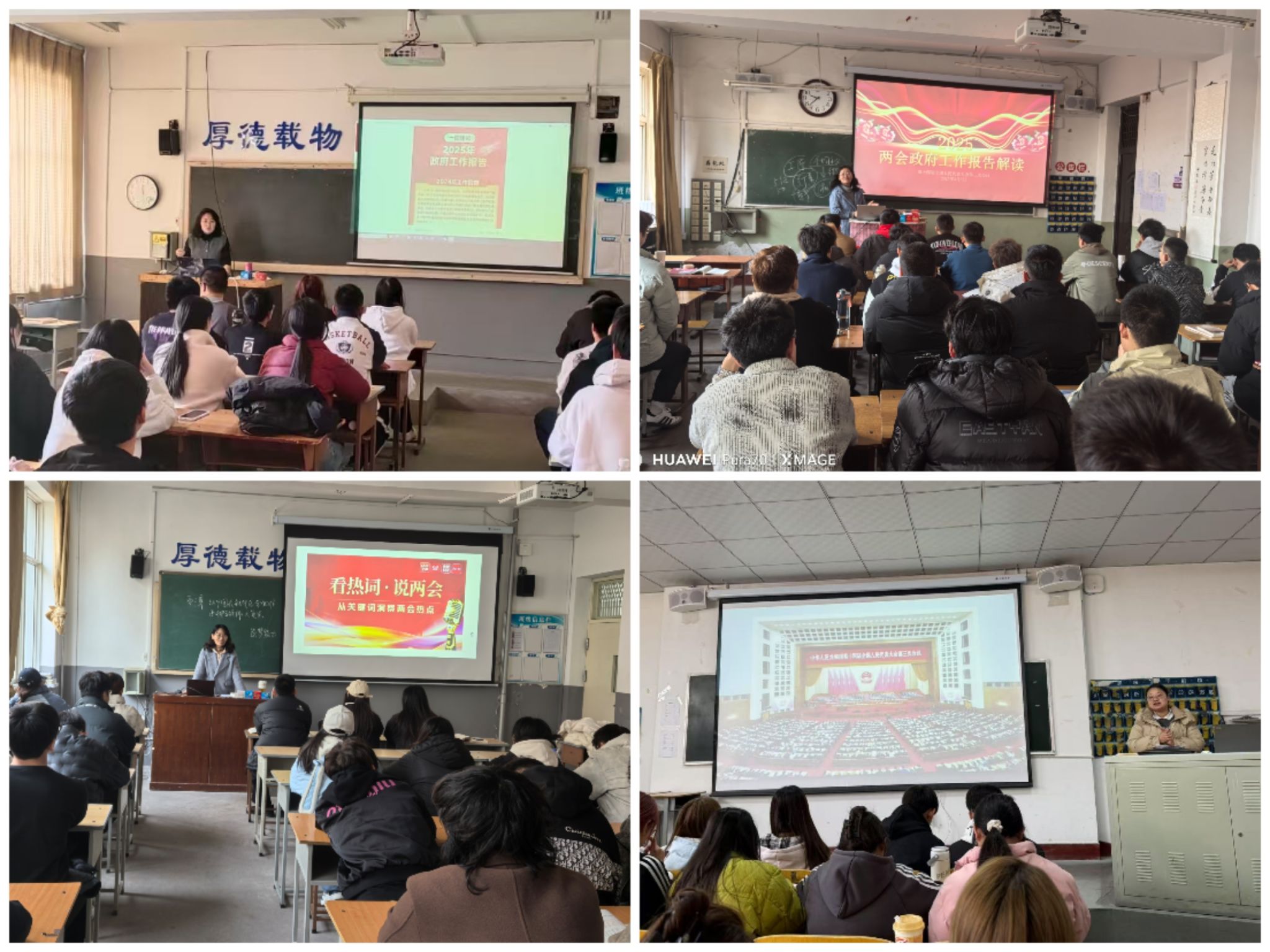 院长何秋生率先走上讲台“数”读两会,“速”读政府工作报告,结合自身的专业知识和教学经验,和同学们分享了对两会精神的理解和感悟,从经济发展目标到民生保障举措,从科技创新战略到社会治理创新,为学生进行了准确、生动的解读。思政课教师结合教学内容,以两会精神为指引,落实立德树人根本任务,聚焦坚持中国特色社会主义道路中的重大理论和现实问题,将两会精神鲜活地融入课堂教学,进一步引导青年学子将个人理想融入民族复兴伟业。