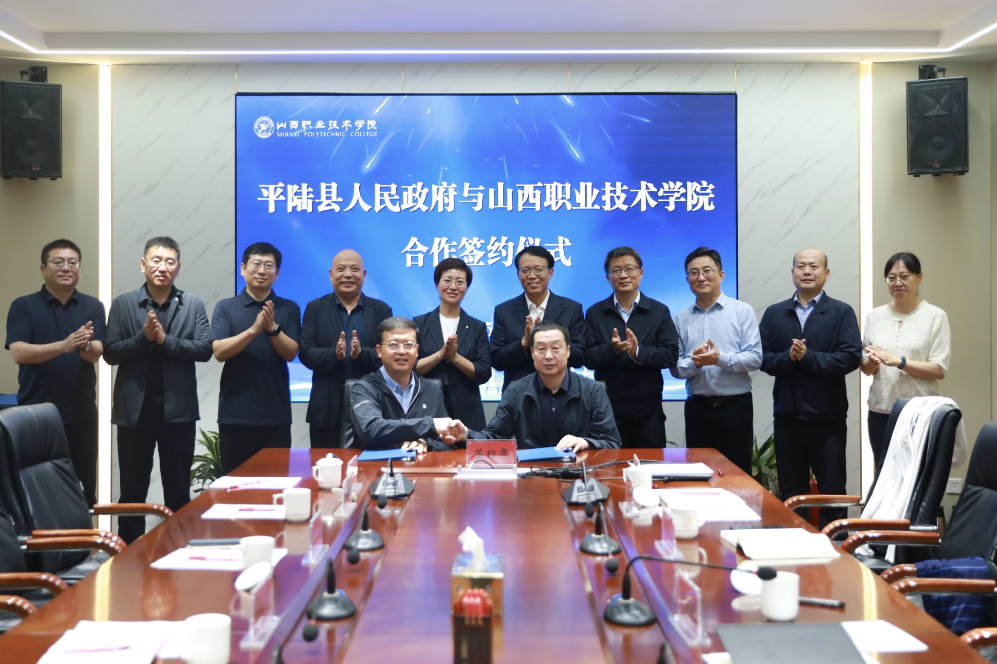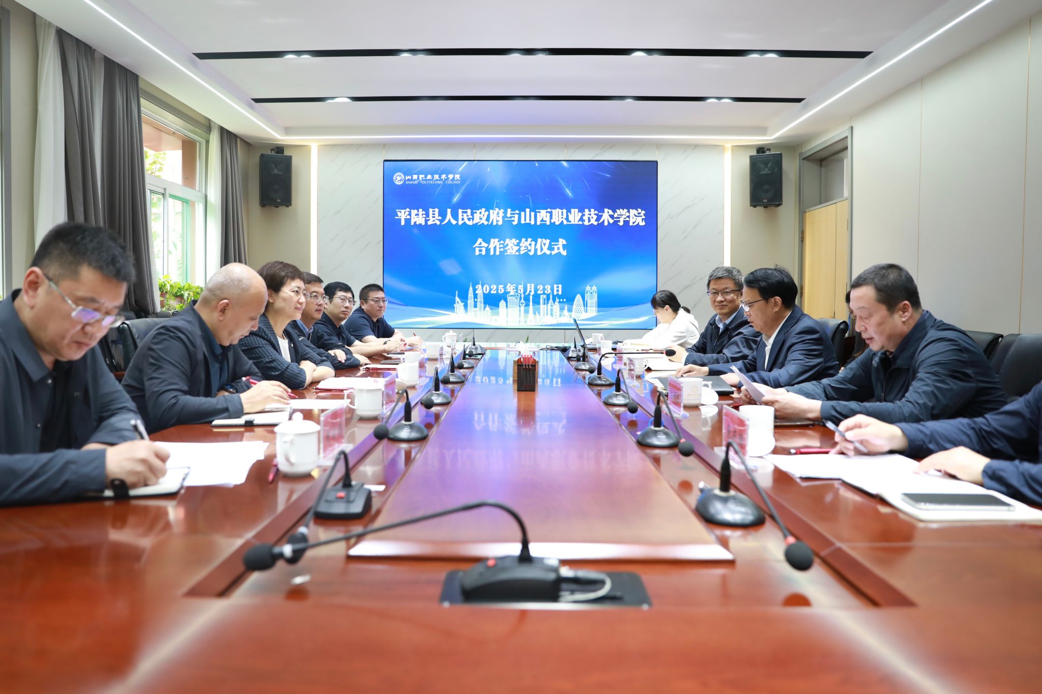5月23日下午,开云官网与平陆县校地合作签约仪式在学院坞城校区办公楼二层会议室举行。平陆县委常委、组织部部长闫小娟,平陆县副县长钱波等一行六人,开云官网党委书记赵随民,党委副书记尤陶江及相关部门负责人出席仪式。会议由党委委员、副院长赤新生主持。