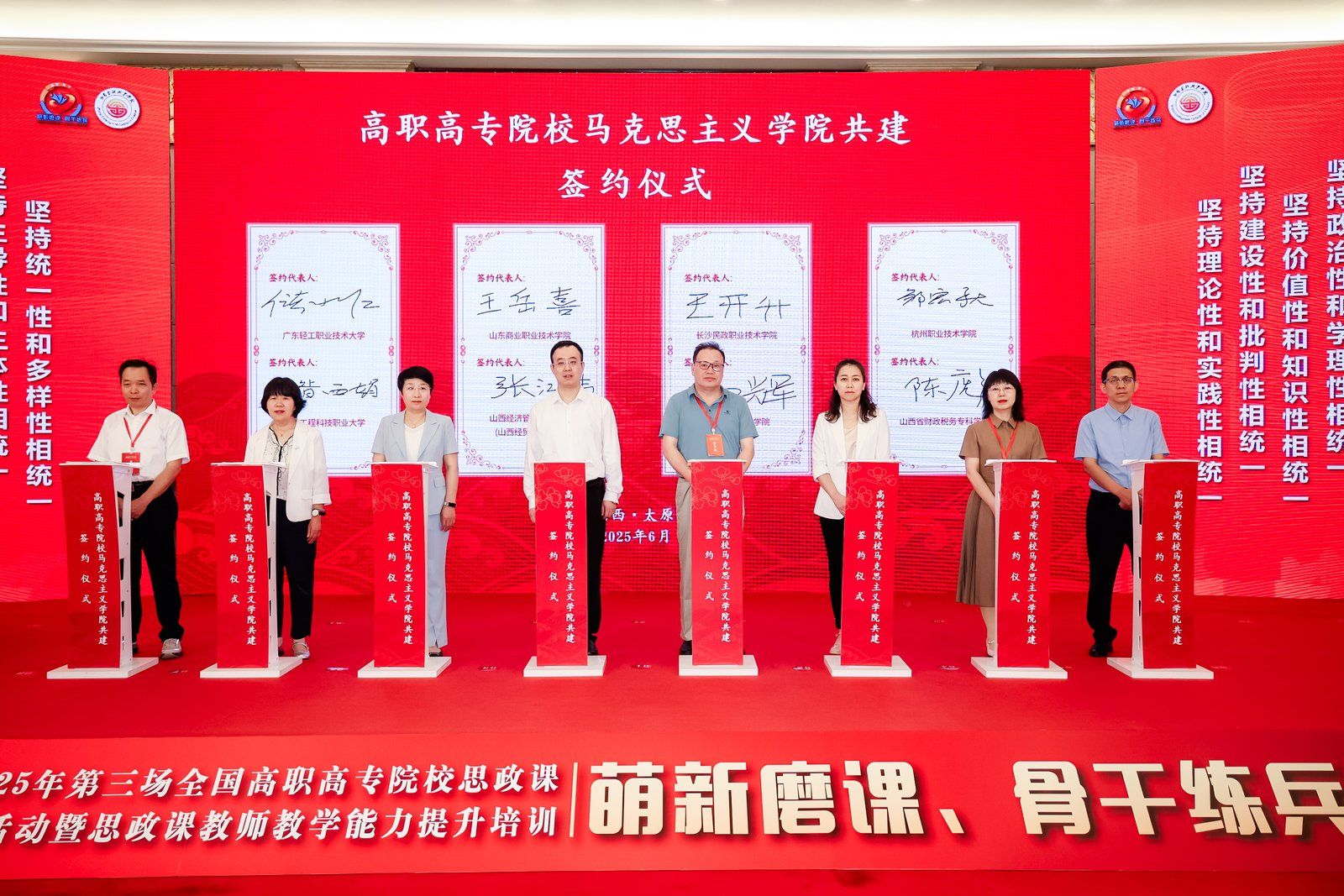 6月14日,全国高职院校思政课“萌新磨课、骨干练兵”教学展示活动在太原隆重举行。学院党委书记赵随民、思想政治理论教学研究部负责人杨辉应邀出席此次活动,与全国近120所院校的马克思主义学院(思政部)负责人、思政课骨干教师和青年教师代表,共同探讨新时代高职院校思政教育的创新发展之路。