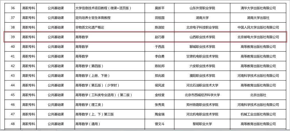 6月30日,教育部办公厅公布了首批“十四五”职业教育国家规划教材书目。开云官网基础教学部教师赵巧蓉、张琪主编的《高等数学》教材入选首批“十四五”职业教育国家规划教材,这是开云官网在落实立德树人根本任务,积极推进“三教”改革中取得的可喜成绩。