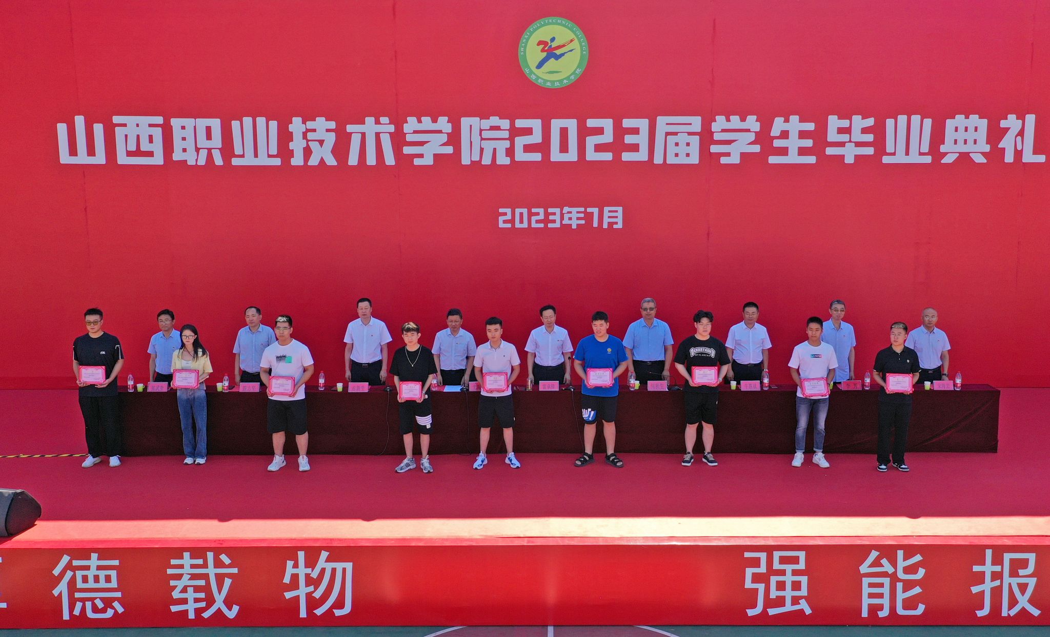 同学们,三年大学时光如白驹过隙,在见证你们每一份付出与收获的同时,学院的事业也不断发展进步。这几年,同学们以主人翁的姿态与学院事业同向同行、同频共振,不断推动学院办学实力和社会影响力持续攀升。学院始终坚持以创新高质量的党建引领新格局统领“一个目标、两手硬”的总体建设发展全局,坚定不移地以学习型学院建设、工作作风建设、教风建设、学风建设、安全文化建设等“五条工作主线”为主要抓手,大力加强学院规范管理内涵建设;坚定不移地以把握服务转型发展的办学定位、构建科学完善的制度治理体系、运筹特色鲜明的品牌专业布局、打造结构科学的双师育人队伍、形成转型升级的产教融合格局、加强现代职教的继续教育建设、建设职教特色的优美智慧校园、开展积极向上的校园文化活动、争创众志成城的全国文明学校、完善大国工匠的协同育人实践等“十大发展任务”为主要抓手,全方位高质量推动学院快速跨越科学发展;坚定不移地以党建引领、加强学习、规范管理、专业建设、人才培养、社会服务等“六项基本任务”为主要抓手,全方位推动系部高质量发展。学院党委团结带领全院广大师生精心打造“特色鲜明、全国一流”的高水平职业院校进而迈向本科层次综合性职业大学而努力奋斗。学院事业蓬勃发展,比如,在“双高计划”建设的中期绩效评价中喜获“优”的等次,同时教科研成果也实现了数量和质量的双提升;比如,学院参加各级各类技能大赛再创佳绩,尤其在首届世界职业院校技能大赛中,学院与法国联队参加信息技术应用与创新赛项斩获银牌,成为我省获得的唯一奖牌;比如,学院招生规模稳步提升,高本贯通培养计划顺利实施,两个专业的学生全部通过转段升学考核;比如,学院成功入选第一批“埃塞俄比亚国家职业标准开发项目”立项建设单位,成功入选全国职业院校产教融合50强和山西省“第四批社会主义核心价值观建设示范点”;比如,学院文体活动也成绩斐然,篮球、足球、武术等体育赛项均名列全省第一、全国前茅,尤其是学生男子篮球队,连续三年获得西北赛区冠军;尤其,学院不遗余力地改善办学条件,新校区一期工程建设项目成功立项,获批6.2亿元地方政府专项债券,工程建设项目已完成各项审批;比如,学院在服务地方经济社会发展的能力和水平明显提升,各项事业呈现出强劲的发展态势等等。每一项成绩的取得,都是山西职院人共同努力奋斗的结果,这些骄人成绩的取得都有每一位毕业生同学们的辛勤汗水,感谢同学们的每一份付出,母校感谢你们,母校也无时无刻不以你们为荣!