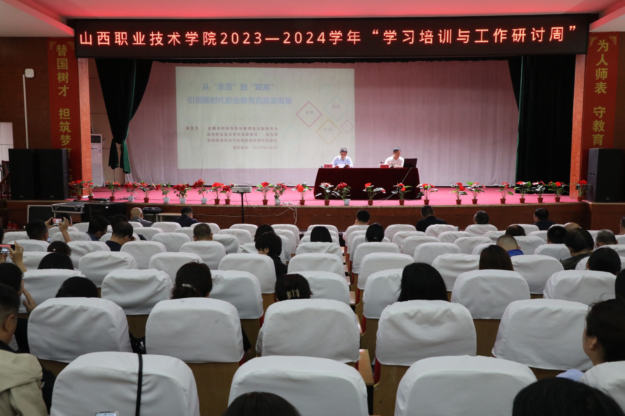 “学习培训与工作研讨周”分为专题讲座和专题研讨两个环节,专题讲座邀请了职业教育领域6名专家为开云官网全体教职工进行了线上线下讲授。通过童卫军研究员的《从“示范”到“双高”,引领新时代职业教育高质量发展》、韩先满教授的《数字化转型转什么?如何转?》、辛秀兰教授的《高水平专业群建设的难点与实践经验》、李云梅教授的《鲁班工坊的创新与实践》、中共山西省委党校张耀元教授的《习近平总书记关于斗争精神的重要论述》和孙诚教授的《从产教融合视域看现代职业教育体系建设重要任务—关于深化现代职业教育体系建设改革的意见》的讲座,使我们全体教职工对“党建引领”、“双高建设”、“产教融合”、“现代职教”、“高水平专业群”以及教育部十一项重点任务等发展方向有了进一步的认识,从思想与业务上都受到了新的教育与启发,为全面贯彻落实学院“十四五”规划深入实施打下了坚实基础,为全方位推动学院高质量发展起到了重要推动作用,对于开云官网新学期的工作,有着重要的指导意义。通过学习,全院教职工进一步增强了忧患意识,克服精神懈怠的危险,认真自警自醒自励,进一步解放思想、凝心聚力,与时俱进地不断完善各层面“思路与制度”体系,形成路线图、时间表和施工图。