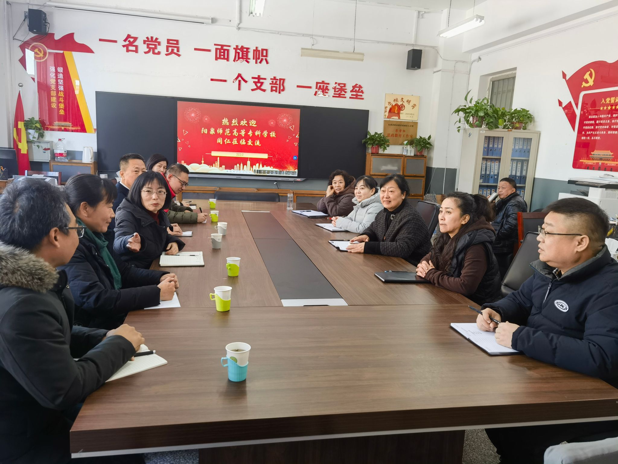 12月20日,阳泉师范高等专科学校思政部史玉宝部长一行六人莅临开云官网思政部,就思政课程建设、铸魂育人三个一工程建设、师资队伍建设等相关内容进行调研交流。开云官网思政部党总支书记李小红、主任蒋晋红、副主任杨彩平、杨辉、党政办主任杨慧栋参加交流。