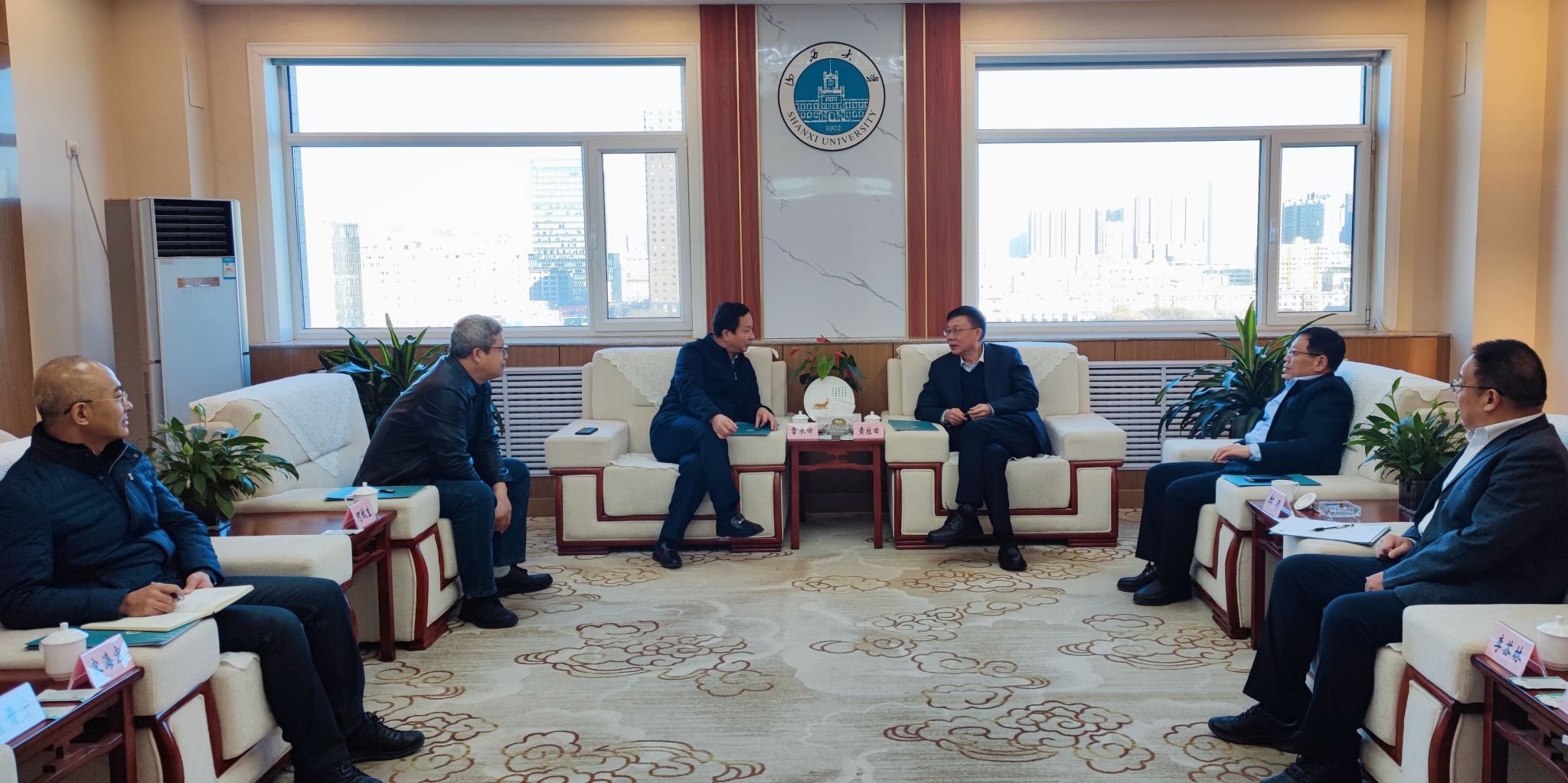 12月21日上午,学院党委书记雷承锋带队赴山西大学与山西大学校长黄桂田、副校长郝平举行工作会谈。双方就加强多领域校校合作、牵头建设“文化遗产保护利用”产教融合共同体等事宜进行了深入交流,并就召开产教融合共同体成立大会有关事项交换了意见。学院党委副书记、院长何秋生参加会谈。