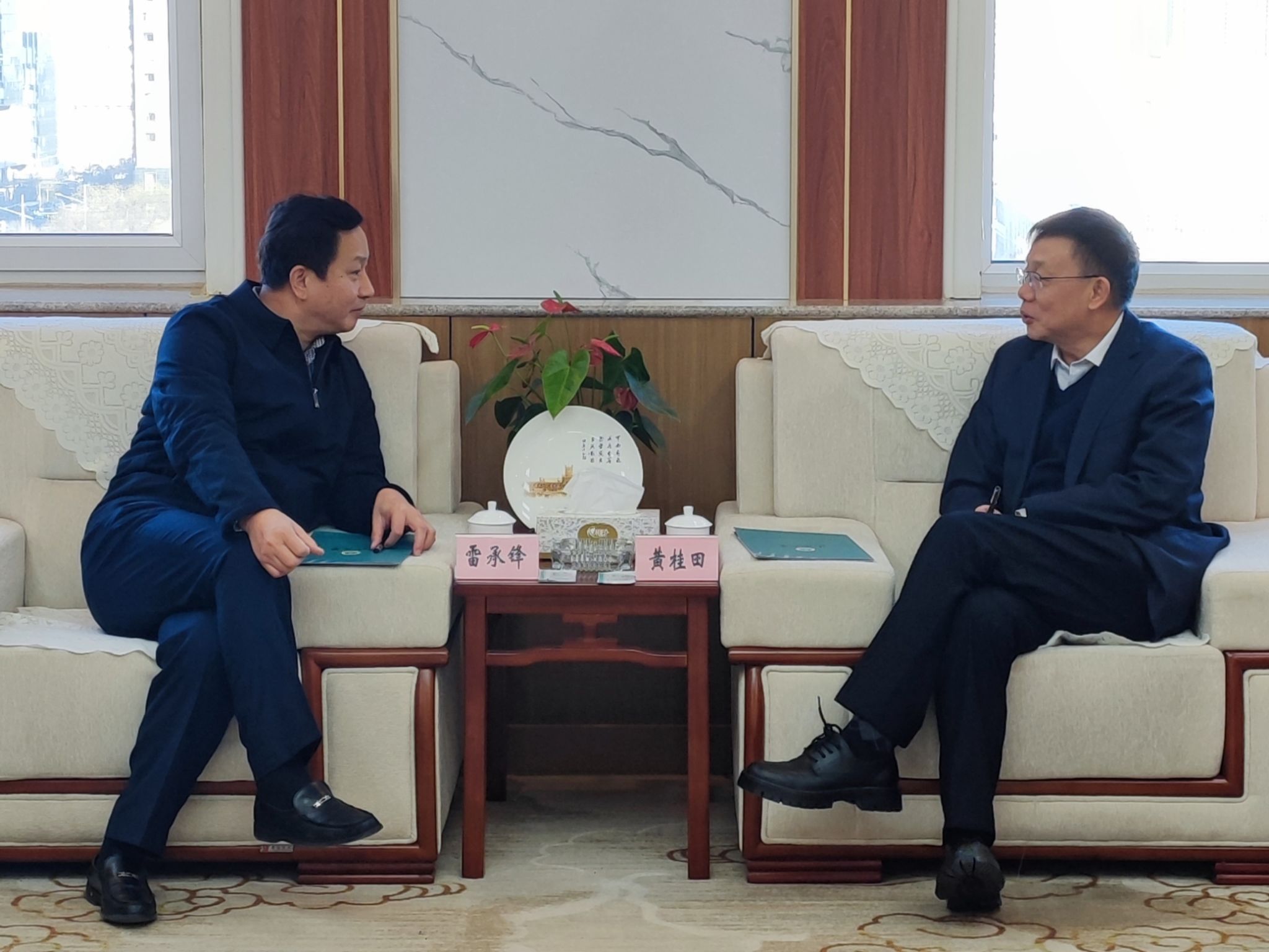 黄桂田对雷承锋一行的到访表示欢迎,简要介绍了学校整体办学情况和考古文博学院学科建设发展情况。他指出,山西大学考古学专业是教育部“双万计划”国家级一流本科专业建设点、山西省高等学校优势特色专业、山西省重点学科,形成了集发掘、研究、教学于一体的“1+3”考古实训基地格局,作为“文化遗产保护利用”产教融合共同体的牵头单位之一,具有较强的学科背景和优势。他表示,推动产教融合共同体建设将为各类人才搭建发展成长的有效通道和平台载体,山西大学将全力支持“文化遗产保护利用”产教融合共同体的各项工作,并以此为契机进一步深化两校资源共享和交流合作。