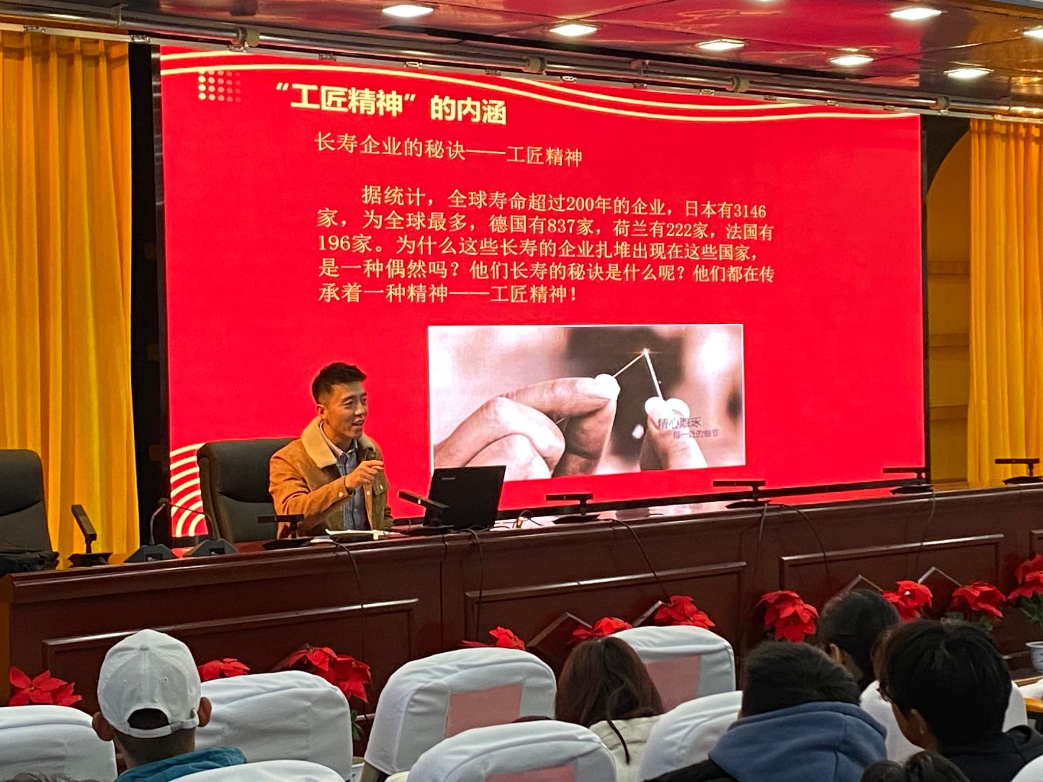 “工匠精神”是社会文明进步的重要尺度,是中国制造前行的精神源泉,是企业竞争发展的品牌资本,是员工个人成长的道德指引。白海源老师通过对“工匠精神”的内涵、为什么需要“工匠精神”、我们身边的“工匠精神”、如何培养“工匠精神”四个方面的讲述,让学生们感受到在新时代的背景下,我们更应该将“工匠精神”融入日常生活当中,这不仅提高我们的生活质量,更是传承和发扬中华优秀传统文化。我们要学习工匠的智慧和毅力,去探索新的领域,创造更多的可能性,用心做好每一件事,用工匠的精神去创造美好未来。