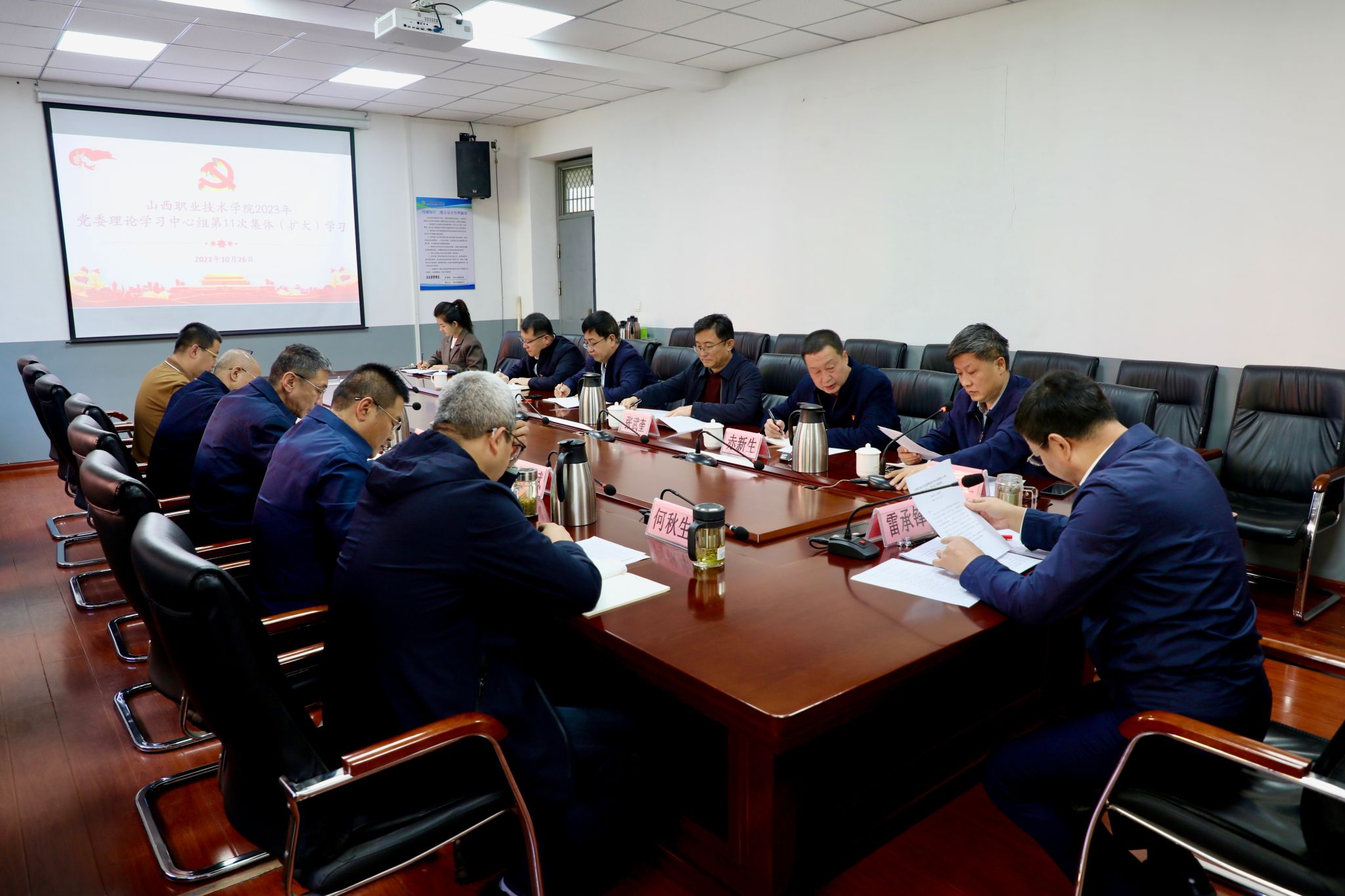 10月26日上午,开云官网召开2023年第11次党委理论学习中心组学习会,学院党委委员、办公室、组织人事部、宣传统战部、教务科技部、团委等部门负责人参加了本次学习会。学习会由院党委书记雷承锋主持。